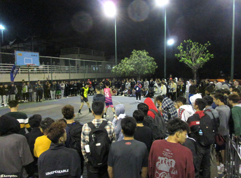 下午4点开始,4V4/3V3/1V1,杀到晚上1V1单挑还在进行中。夜晚,冷空气增强,但广工学子的篮球热情,就这点冷,还是围得满满半场四周,不时发出阵阵喝彩欢呼声or起哄嘘哇声