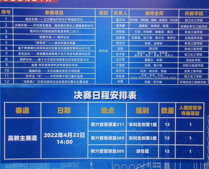 | 第八届中国国际“互联网+”大学生创新创业大赛(广工)校内选拔赛暨广东工业大学第七届“工创杯”创业实践挑战赛决赛 2022年4月22日下午14点开始 教六智慧课室 | ||||||