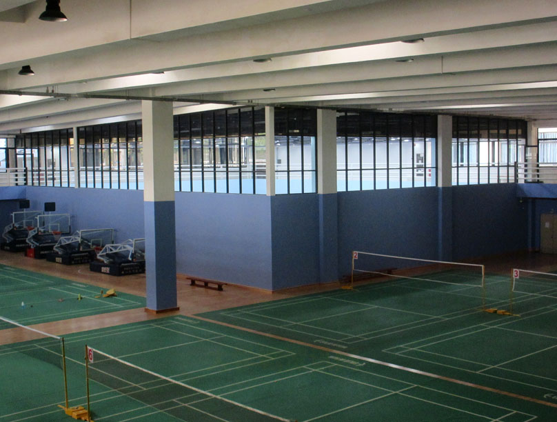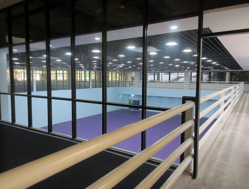 还有一点,这整体的南羽毛球场区,站在周围的二楼环步道看,已不是之前那样四四方方连成一片的自然舒适视觉感,但不得不说这个西北四分之一区隔间新装空间,非常引人注目和突出,可说小带高级感,这也算是这种打破原有格局的改装之下的一种“补偿”吧