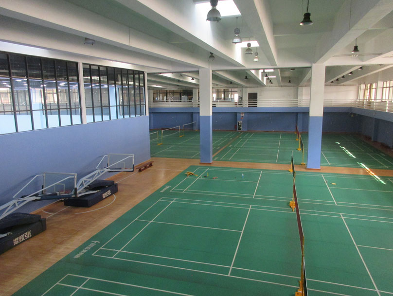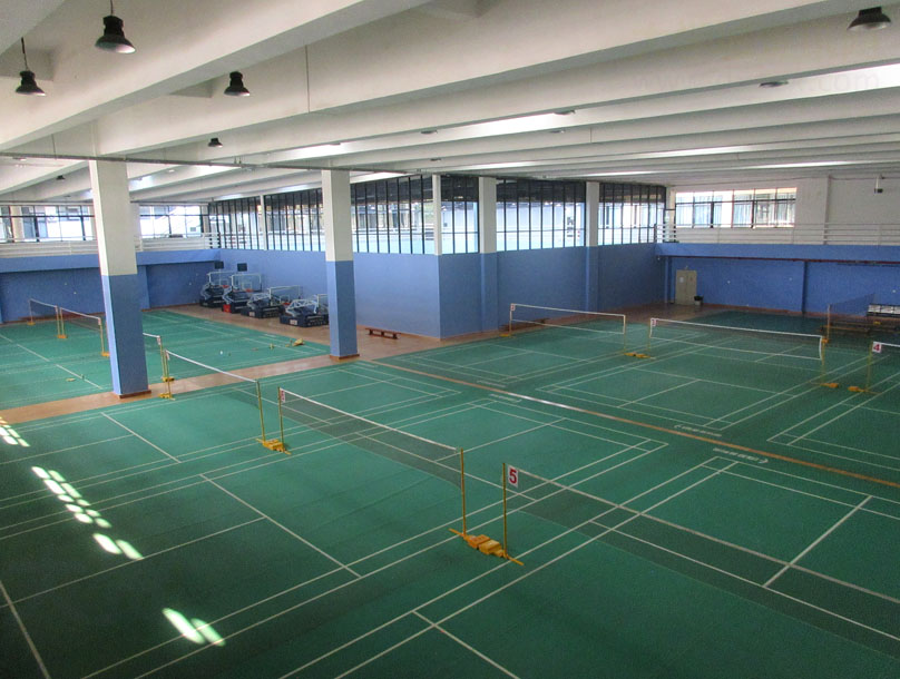 另外剩余的四分之三区,看到也有简单装修了一下,重新粉刷了一遍四周墙面,颜色上从之前的白色变成新的偏浅蓝色,同时那西北四分之一“高档”区连同一起外墙也是同样浅蓝色,之前东西两边半区之间的矮隔墙已拆去,印象中之前通常两边好像是各南北向平排四个羽毛球场,现在看到是,整个四分之三区是呈直角体平面形,也还是继续延用作羽毛球场地,不过不同的是,各场之间摆置距离较之前是更密集了,之前两边加起来算才八个场那样,现在平面积变小了,反而羽毛球场数还增多了,有10个,可能以后进到这里打羽毛球,多数场地会感觉没以前那么移动自如舒展,因为尤其场边后区部分基本没剩余多少缓冲地带,往后撤打就要顾及到旁边周围场地,两边也是几乎一样远看都黏在一起了,这算不算是一种空间场地的“优化利用”呢