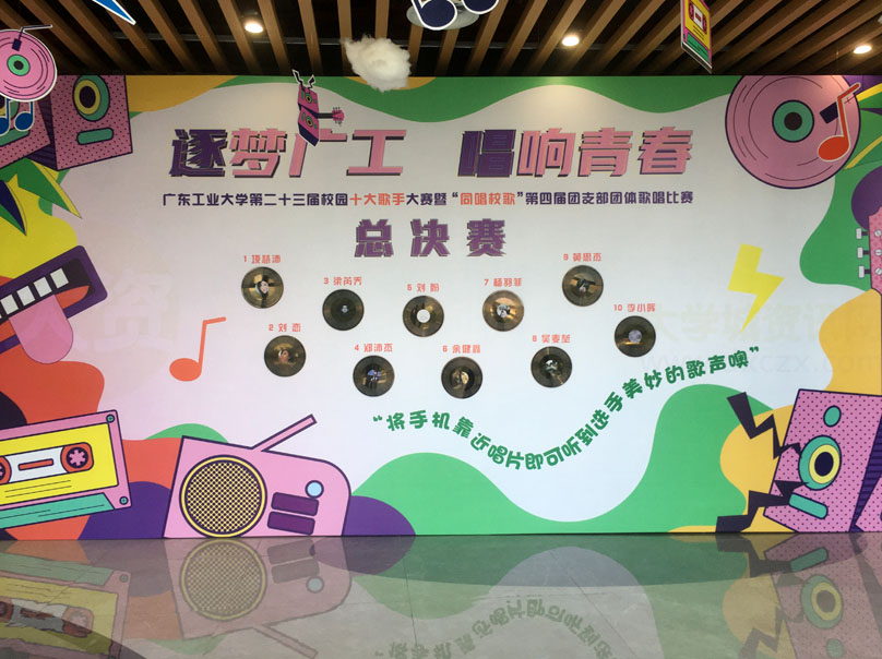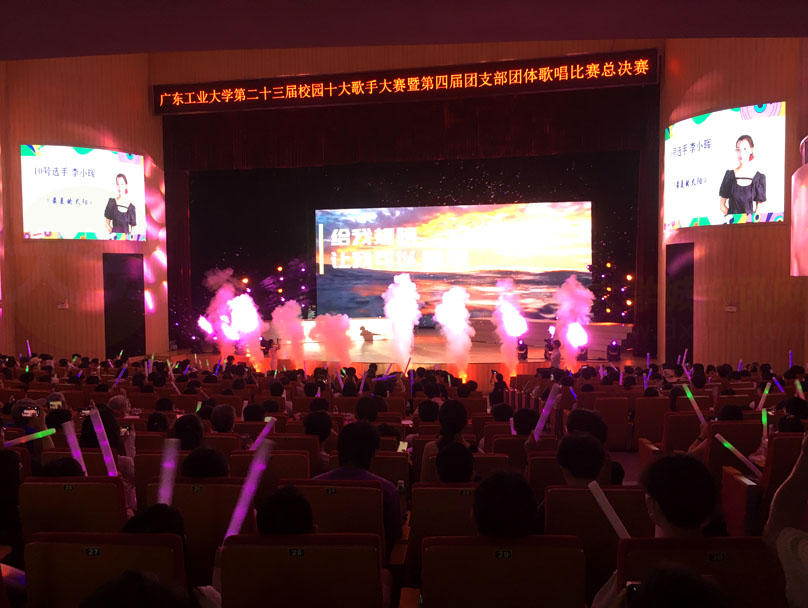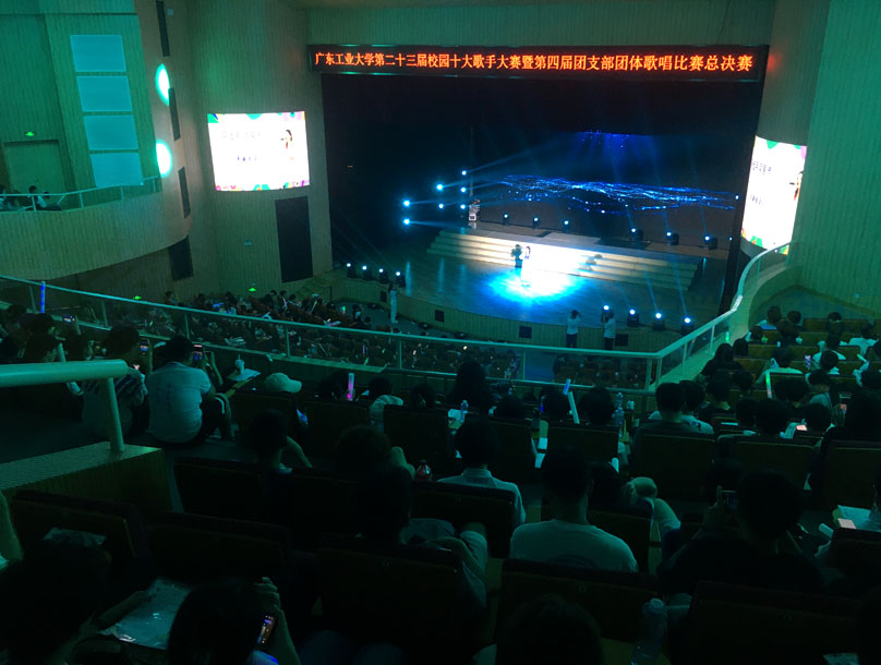 广东工业大学第23届校园十大歌手大赛今天下午在教学区文化活动中心进行 十位参赛选手可谓都实力不俗,经过可以说是激烈的竞争角逐后,最终来自龙洞校区经济学院的黄思杰获得本届十大歌手冠军,二三名分别是来自大学城校区的土木学院-余健鑫和环境学院-吴麦垒