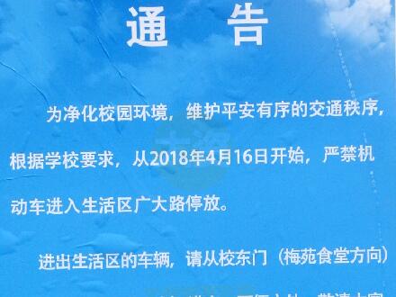 2018年4月16日开始严禁机动车进入生活区广大路停放