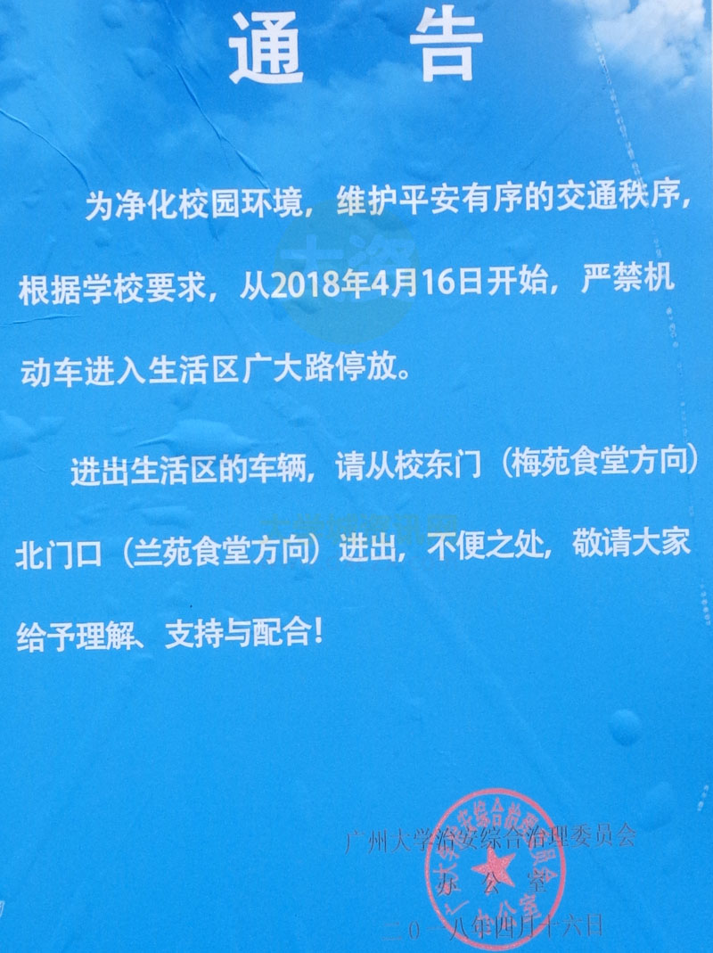 2018年4月16日开始严禁机动车进入生活区广大路停放