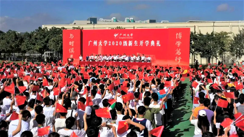 今上午 2020级新生开学典礼在教学区北假草田径场进行