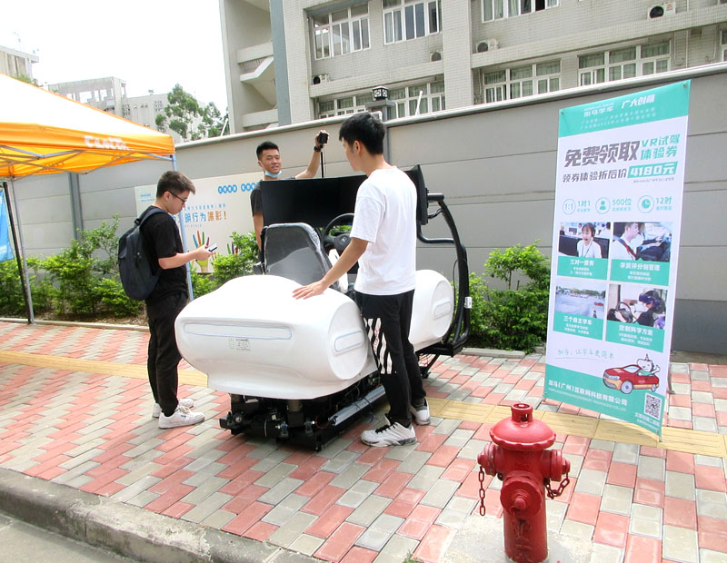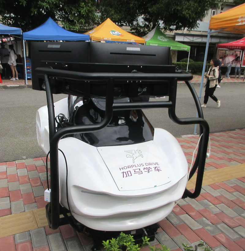 生活区,今天看到一辆说是VR学车的叫加马学车,新型的说,相对于传统的实车操作?