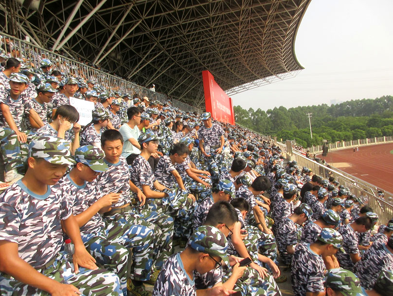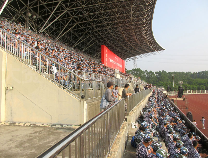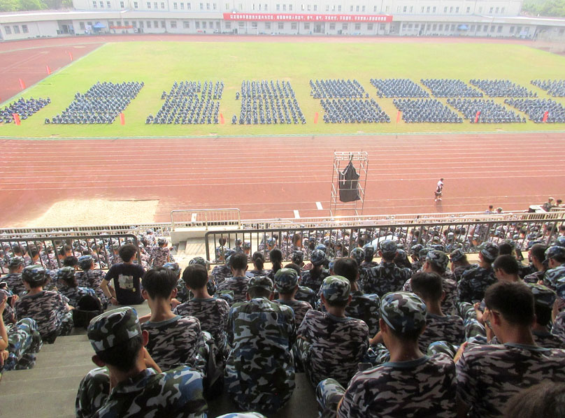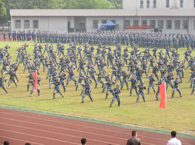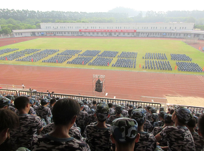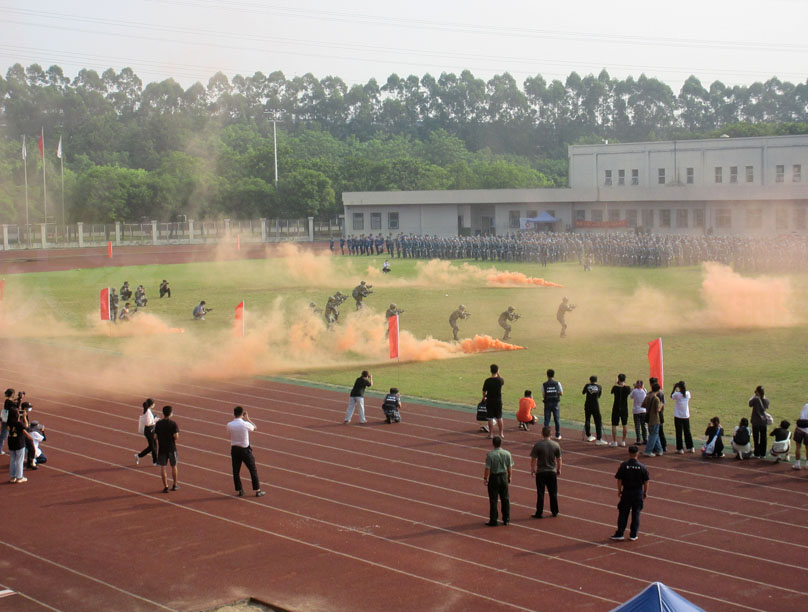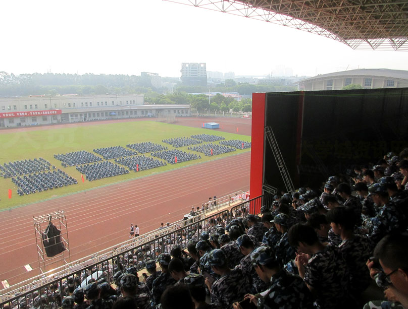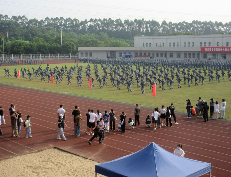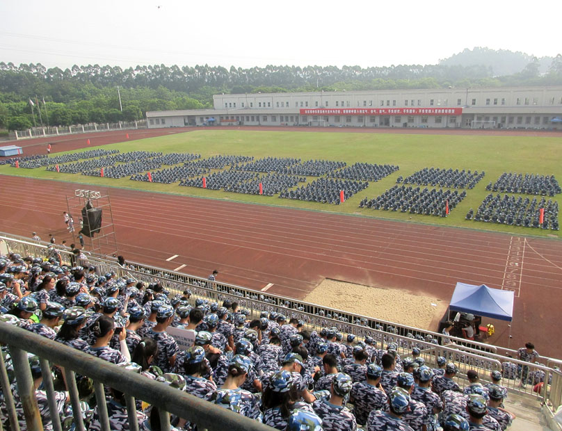 广州大学2022级新生军训汇报表演今上午在教学区运动场进行