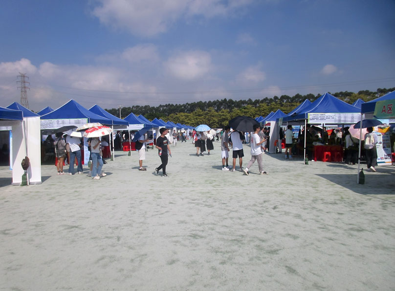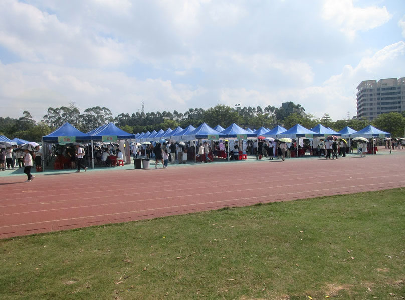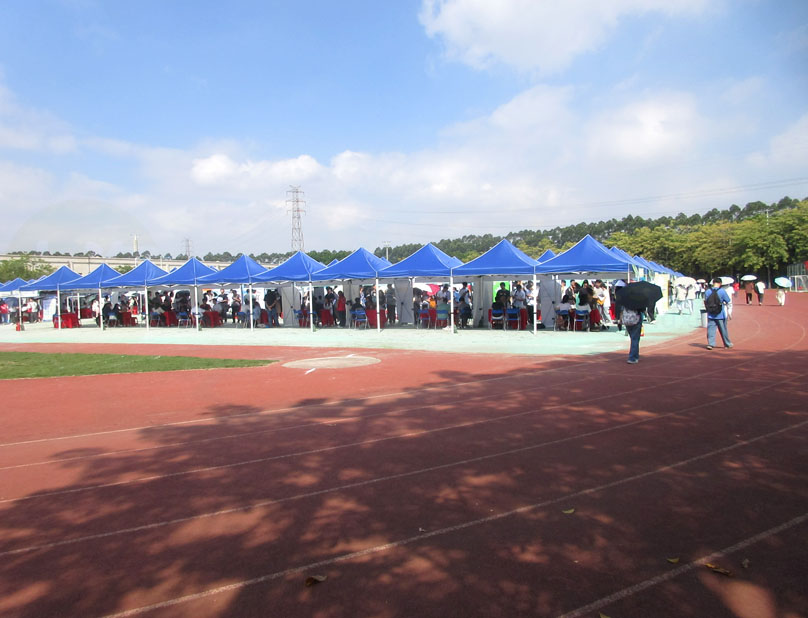 广州大学教学区北田径场副场这场招聘会已经在展开进行中 现场天气较为热晒