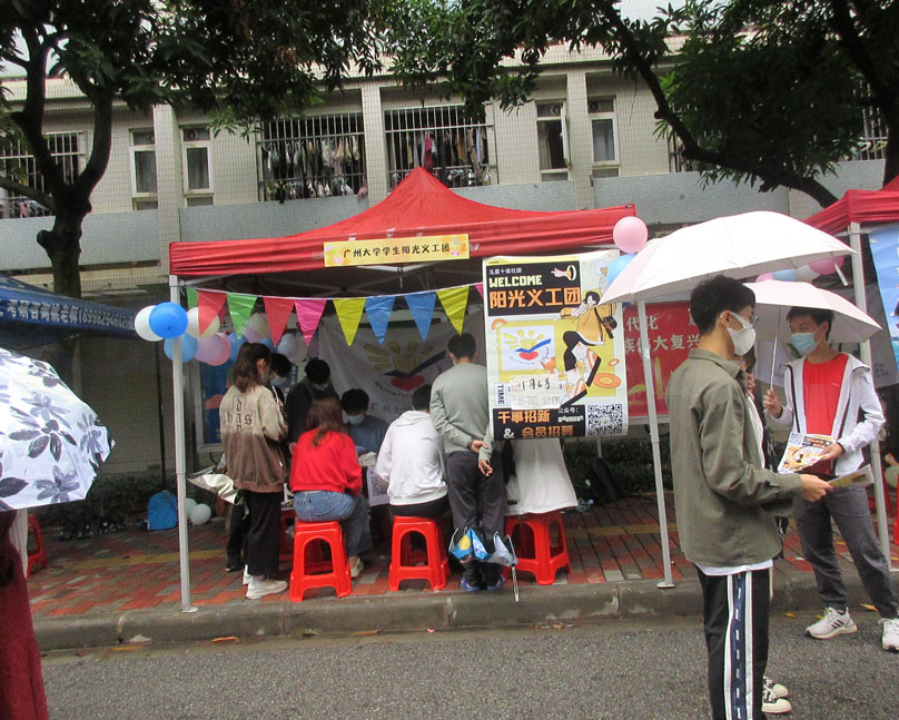 广大2022百团招新 摊位现场之阳光义工团&流觞亭诗社 具体位置兰苑2栋南侧辅道中间