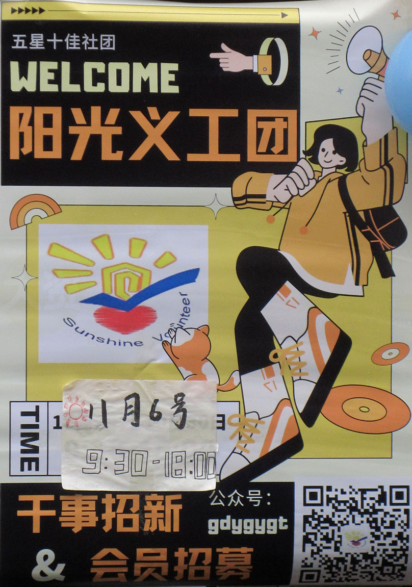 | 广大2022百团招新 摊位现场之阳光义工团&流觞亭诗社 具体位置兰苑2栋南侧辅道中间 | ||||||