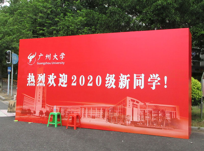 | 迎新的牌子已经摆出来了,明天开始就有新生正式到校了 | ||||||