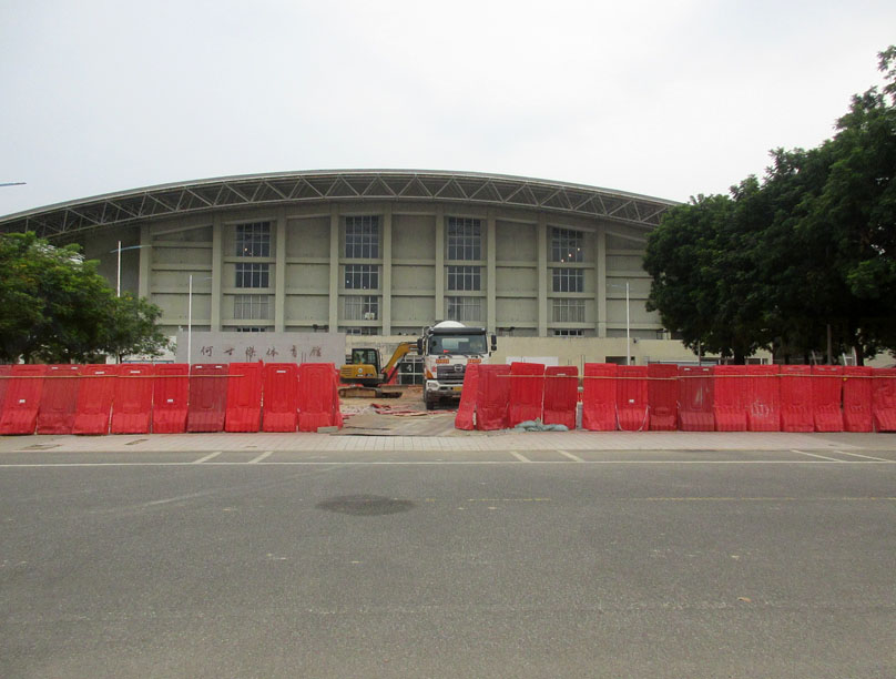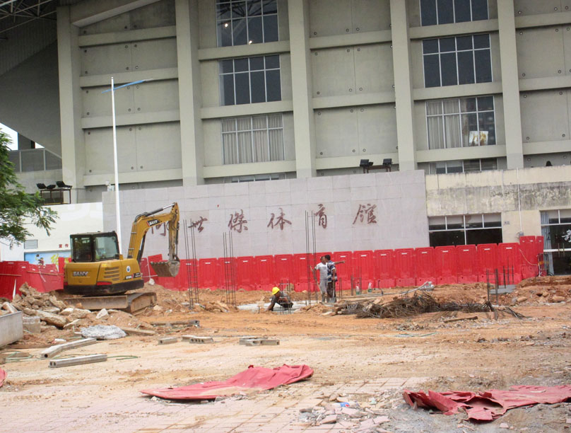 近看这钢筋支立的位置,建好后的地上物空间,是不是会遮挡到这个体育馆本身的名称标识墙;本身这个位置有块空地不是挺好挺合适的吗,建好后的效果是否会影响到整个体育馆的观感? |