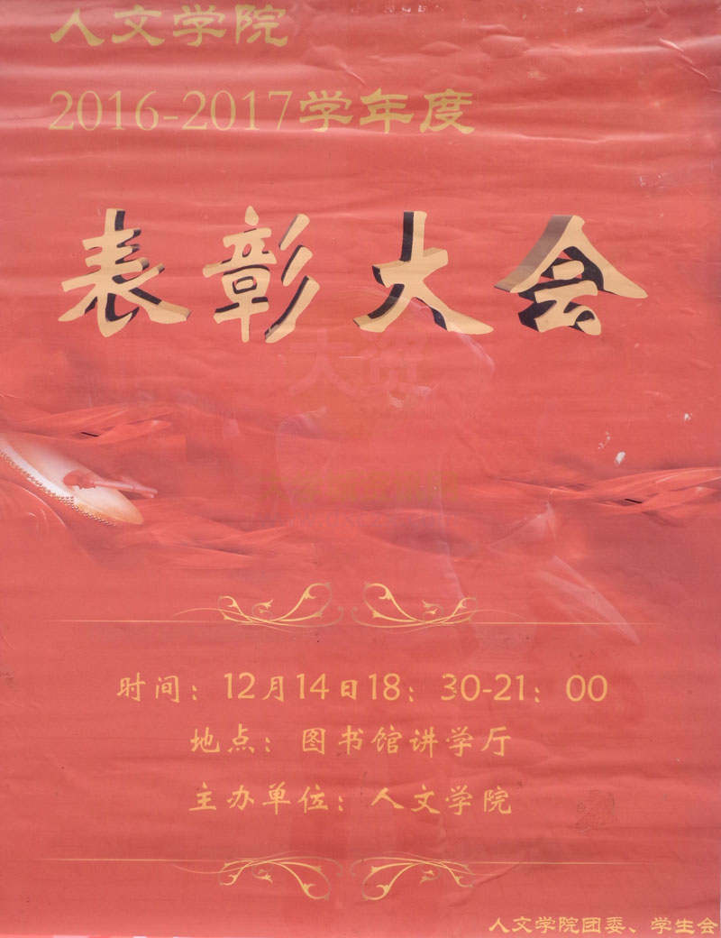 | 人文学院2016-2017学年度表彰大会 12月14日18:30-21:00图书馆讲学厅 | ||||||