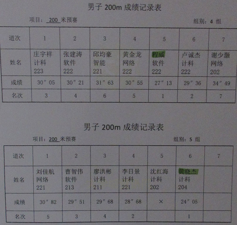 2022.10.22广大四院联合运动会 男子200米预赛(5组)成绩记录表