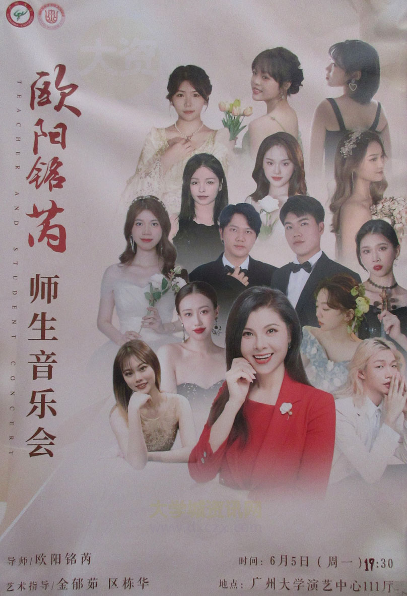 | 广州大学音乐舞蹈学院 欧阳铭芮师生音乐会 6月5日周一晚19点30 演艺中心111厅 | ||||||