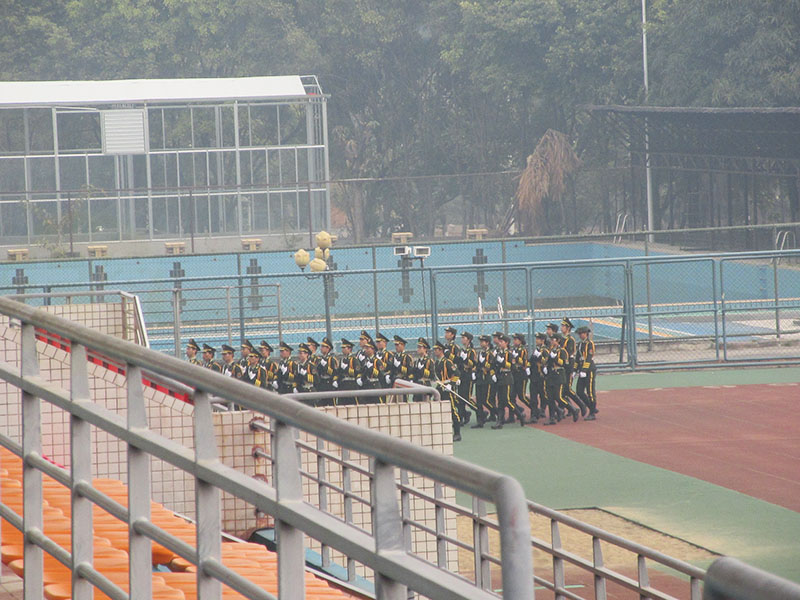 动员大会今上午在教学区体育场进行,标志着军训正式开始,将一直训到1月29号为止