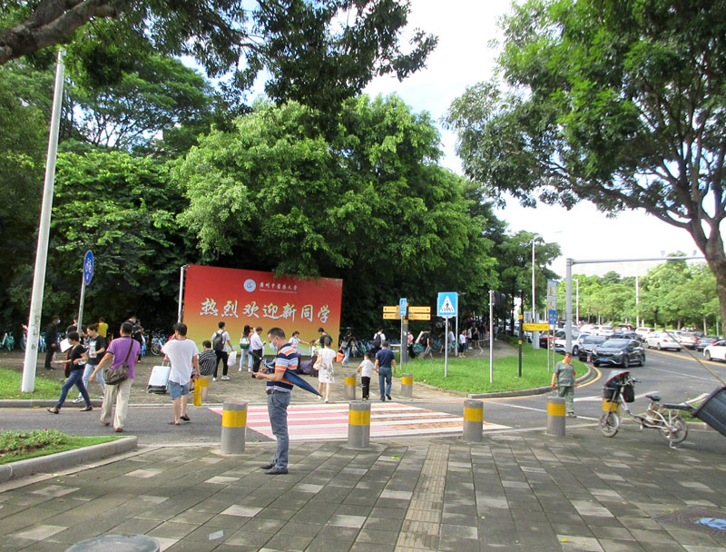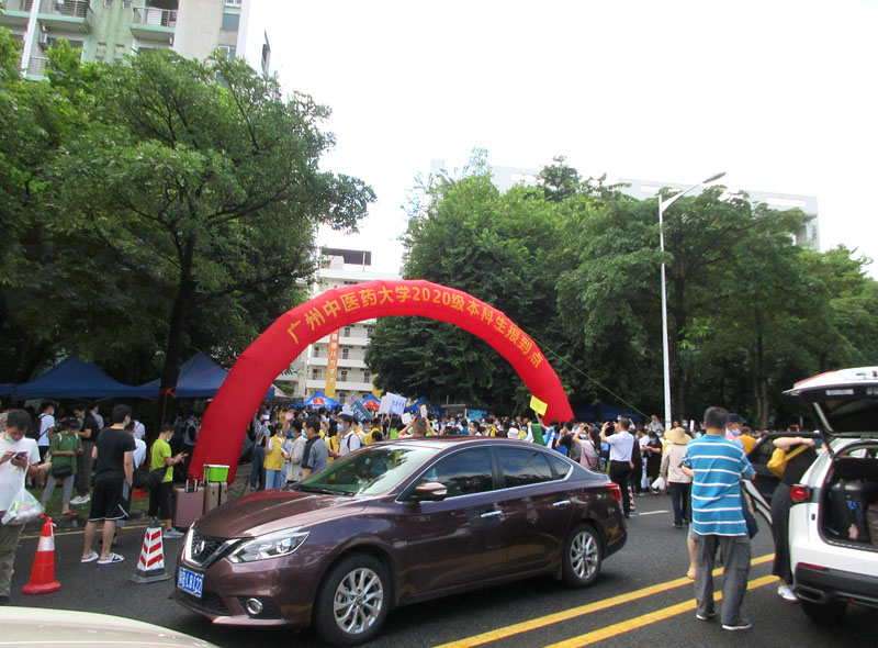 新生报到实时视象,生活区A栋出入口上午九时许,已然车满堵塞,人头涌涌,彩虹门下热情接待的师兄师姐、兴奋稚气的新生们,以及只能就此止步而略带失望的家长们