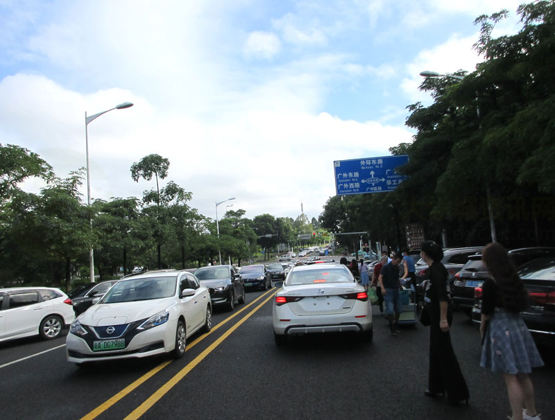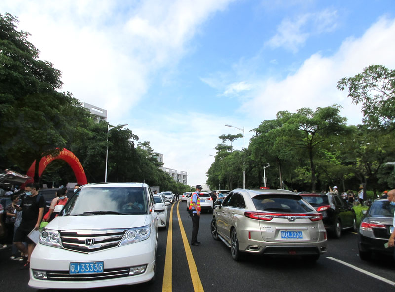 | 新生报到实时视象,生活区A栋出入口上午九时许,已然车满堵塞,人头涌涌 | ||||||