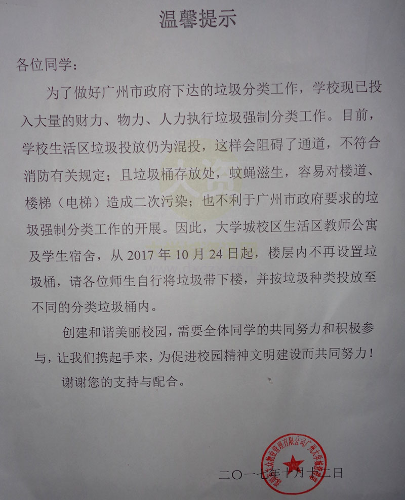 | 关于执行垃圾强制分类工作的通知 | ||||||