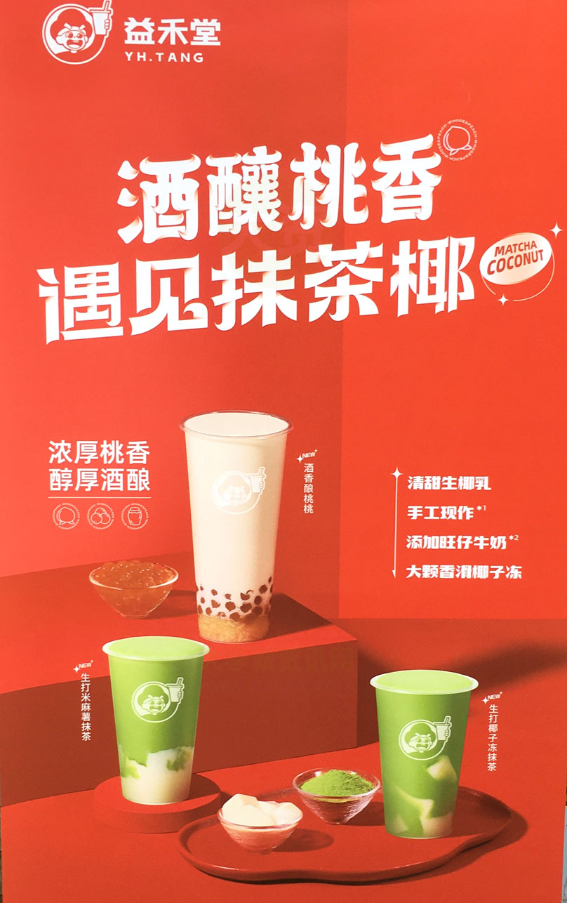 一饭一楼内 益禾堂 新学期最新推荐 酒香酿桃桃 生打米麻薯抹茶 生打椰子冻抹茶