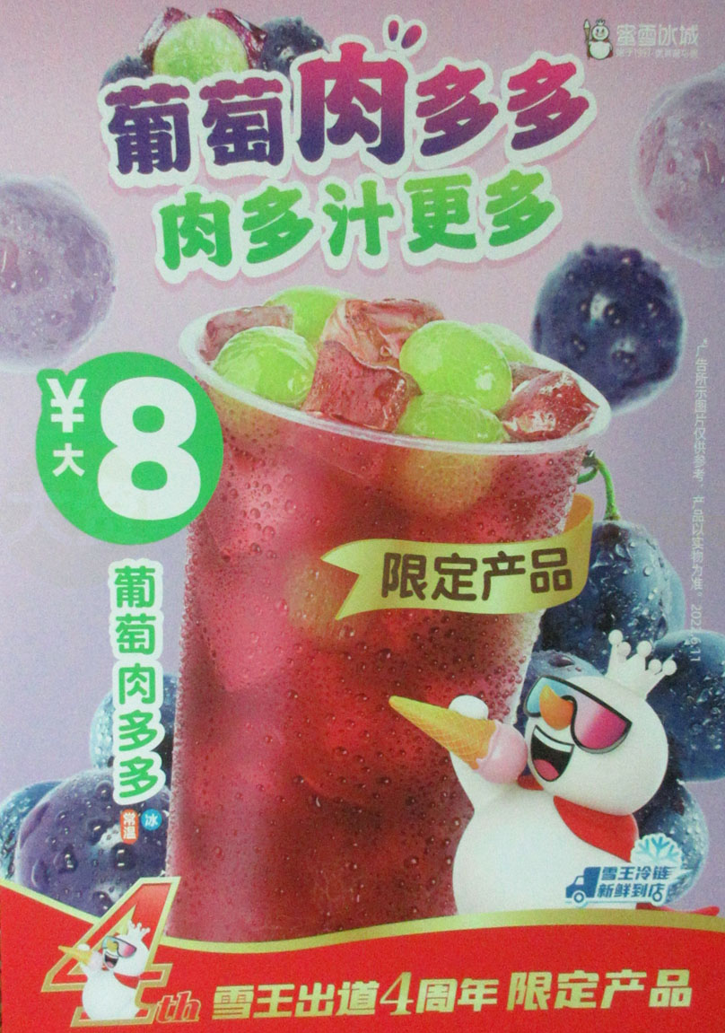 | 广中医二饭二楼东北角 蜜雪冰城 雪王出道4周年限定产品-葡萄肉多多 大杯8元 肉多汁更多 | ||||||