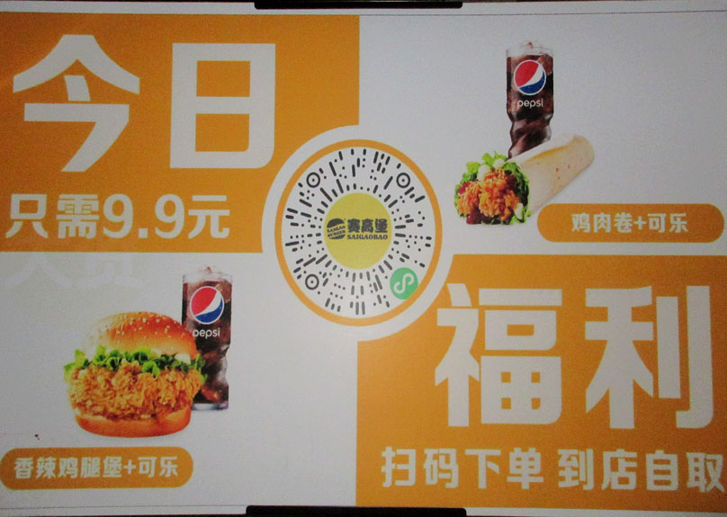 | 广中医一饭西南角 赛高堡汉堡店 鸡肉卷+可乐、香辣鸡腿堡+可乐 今日只需9.9元 扫码下单,到店自取 | ||||||