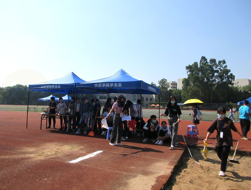 今天星期天,广中医生活区还是很热闹的,不仅有百团大战开幕及各社团的招新表演,生活区足球田径运动场中药学院的运动会也进行中