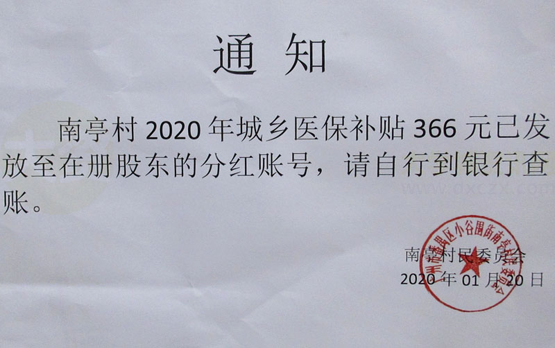 | 南亭村委-南亭村2020城乡医保补贴发放通知-2020.01.20 | ||||||
