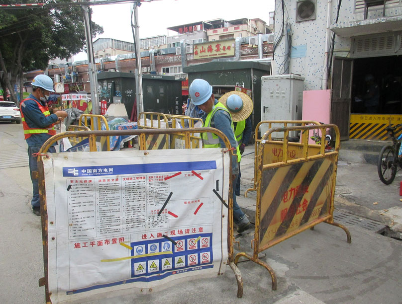 南商街东侧中-电房转移施工似又有小作业 之前路面下管道已经修筑好、市场西侧新大电房也建好,但迁移工作就还未马上落实