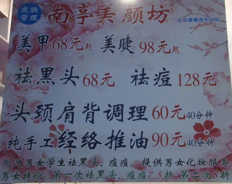 | 西社大街中北 南亭美颜坊 面部清洁祛痘美甲68元起 美睫特价98元起;男女生第一次消费75折,第二次消费8折 | ||||||
