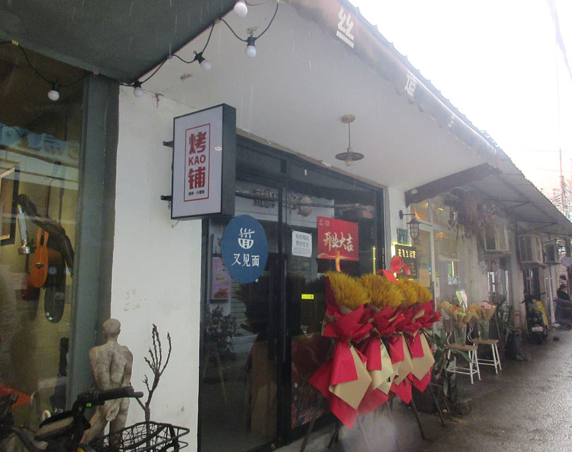 西社大街中 之前原格爵丝在装修的店面 原来是又见面,不远处的旧店已搬过这边,目前已新店开业,不过说改名叫烤铺,又见面不挺好吗,改后着重突出有烧烤类供应?