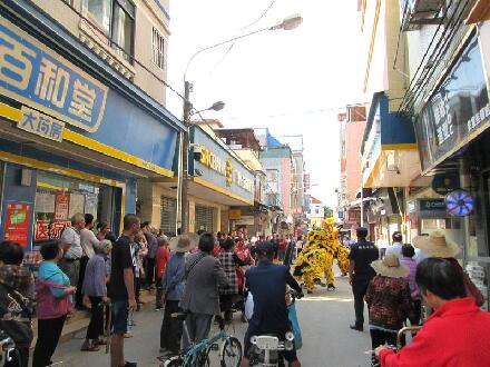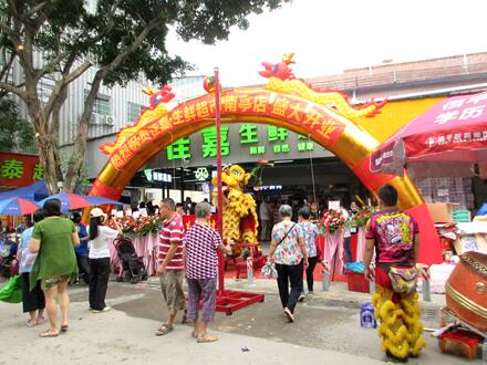 一大早就听到锣鼓喧天的、舞狮助兴,佳嘉生鲜超市今天正式盛大开