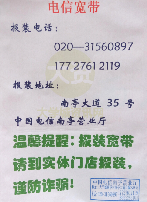 | 中国电信南亭营业厅电信宽带报装提示 | ||||||