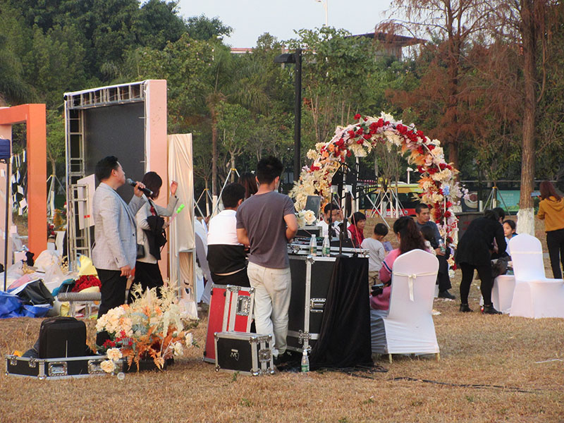 还专门在江岸边草坪设了个婚礼场景,这在以往还是比较少有的,现场气氛好像还不错,主要是,温度、夕阳都刚刚好
