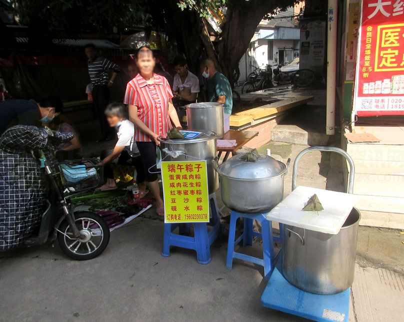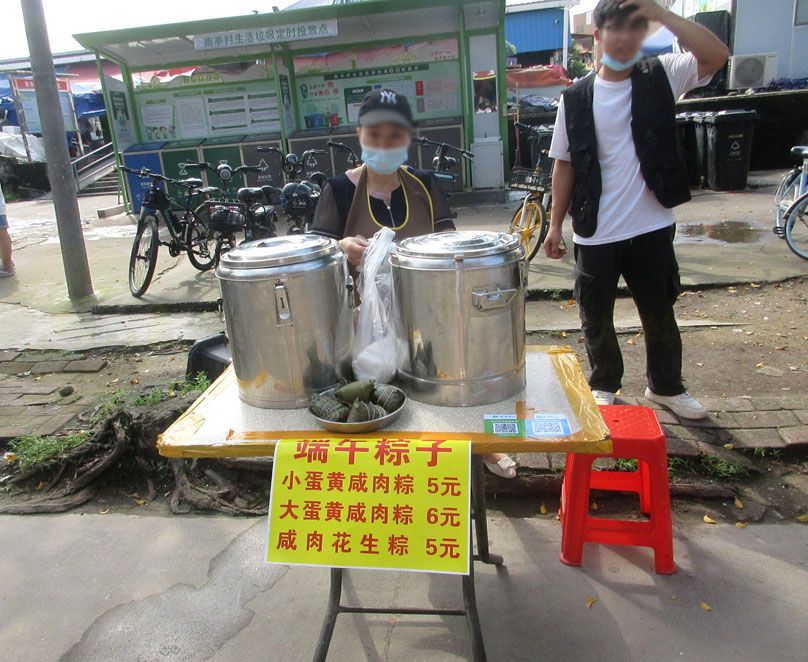今天端午节,南亭大道中段,上午时分,看到有几家临摆专门卖粽子的