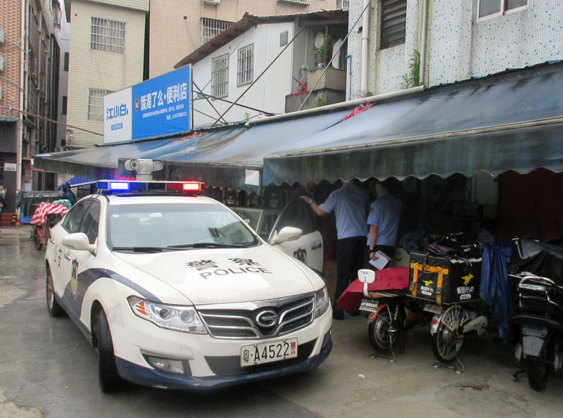 同时,转角这边,“南下”贯道靠东的一家外卖店,似乎民警也在对其进行巡查