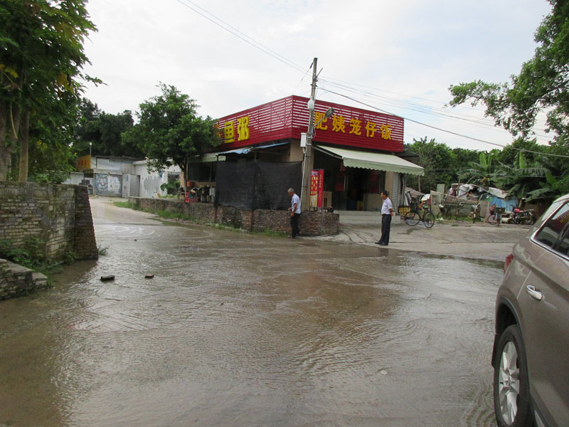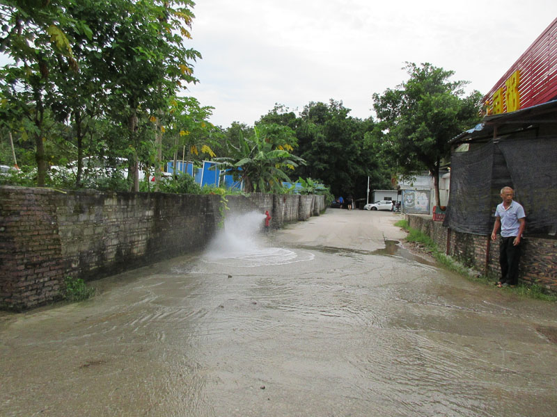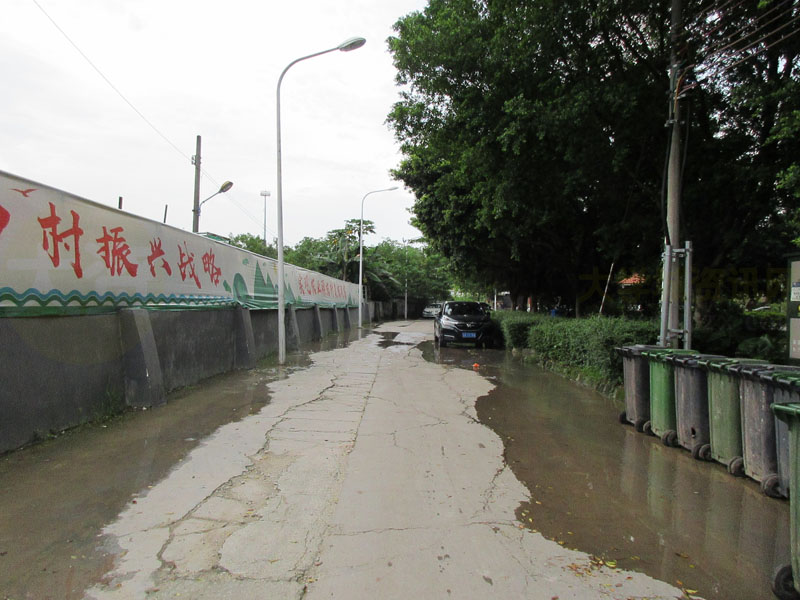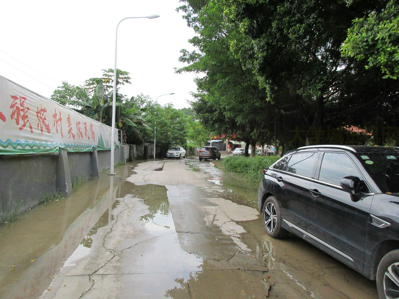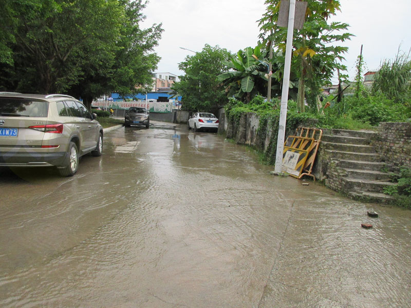 看起来整段下朗大街中至北段都要水流成河状了