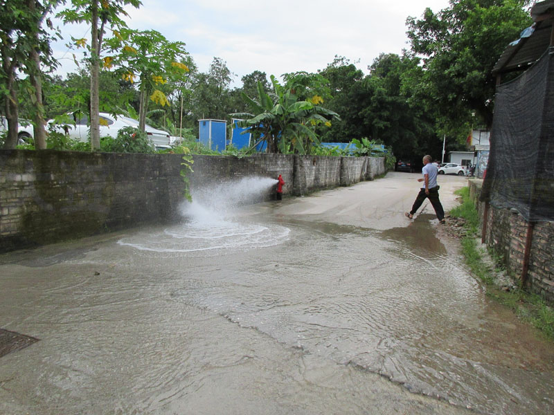 看状势,这消防栓冲盖漏水,应该有一二十分钟左右了吧。估计稍后,会有水利相关人员来处理 |