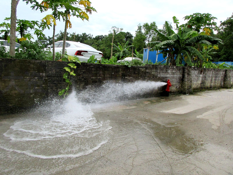 原先还以为是哪个水管爆裂呢,原来是消防栓的一个出水口门阀盖爆开了