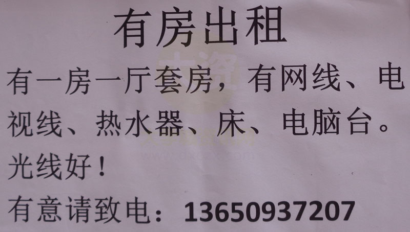 | [有房出租]有一房一厅套房,有网线、电视线、热水器、床、电脑台。光线好!有意请致电:13650937207 | ||||||