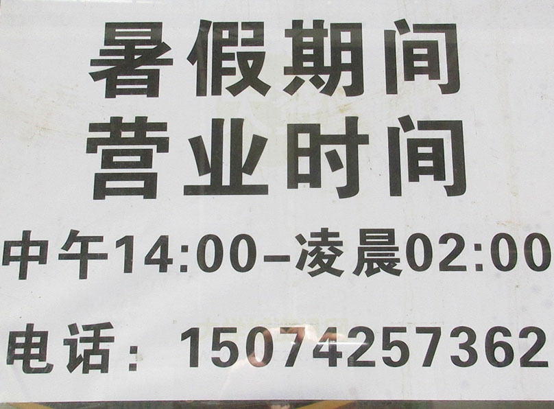 | 南亭村-桥头直街-N.87撞球吧 暑假期间 营业时间为下午14点至凌晨02点 电话15074257362 | ||||||