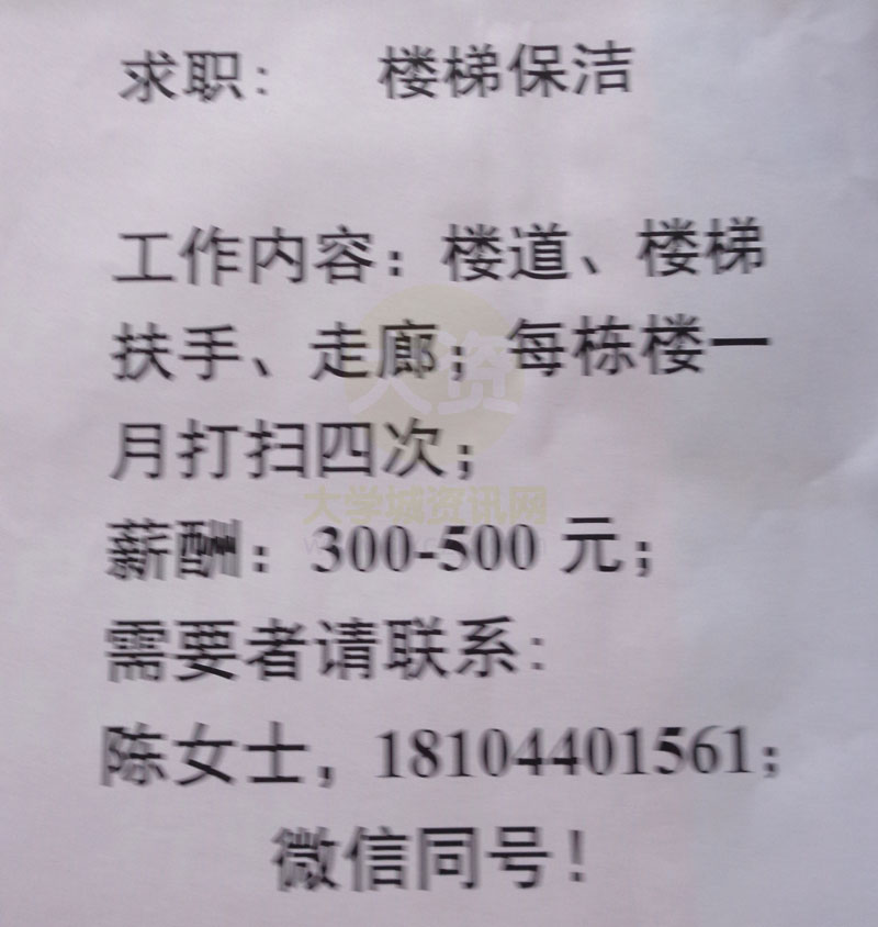 | [求职]楼梯保洁工作 | ||||||
