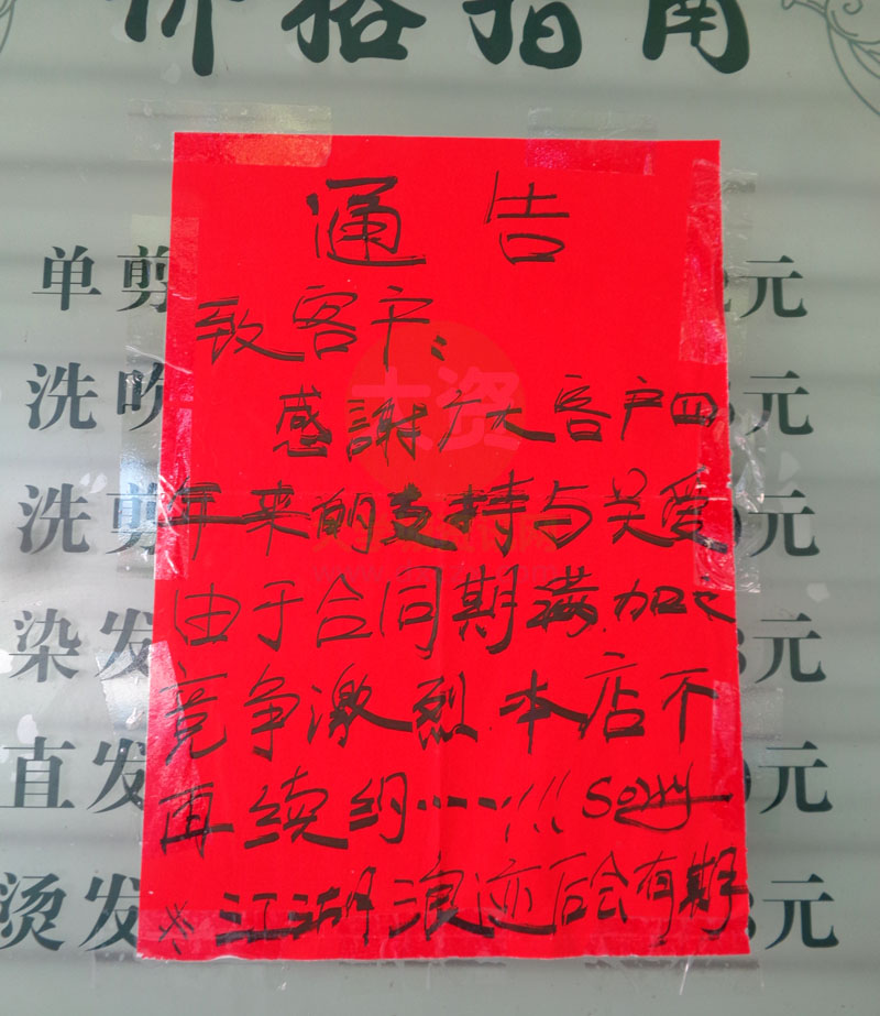 | 市场南三角楼-Xin?S心丝理发店 发布不再经营关闭公告 | ||||||