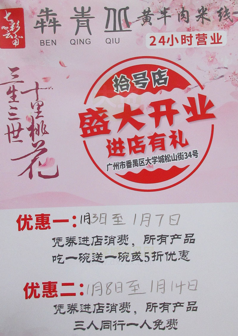 南亭北路中-印联盟隔壁?青牛(黄牛肉米线)店盛大开业,好像说是24小时营业喔,南亭24小时营业的店真是少咯