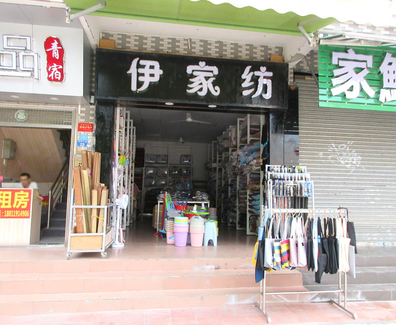 南亭大道中-这家新装修卖床上用品等为主的日用品店,名称打上了,叫伊家纺,第一个伊字,有几分偏女生女性啊,解为她意,家纺,顾名思义,家庭纺织用品了,棉被啊、床褥啊、枕头啊,很多都可以纺织品,甚至床垫、床毯等