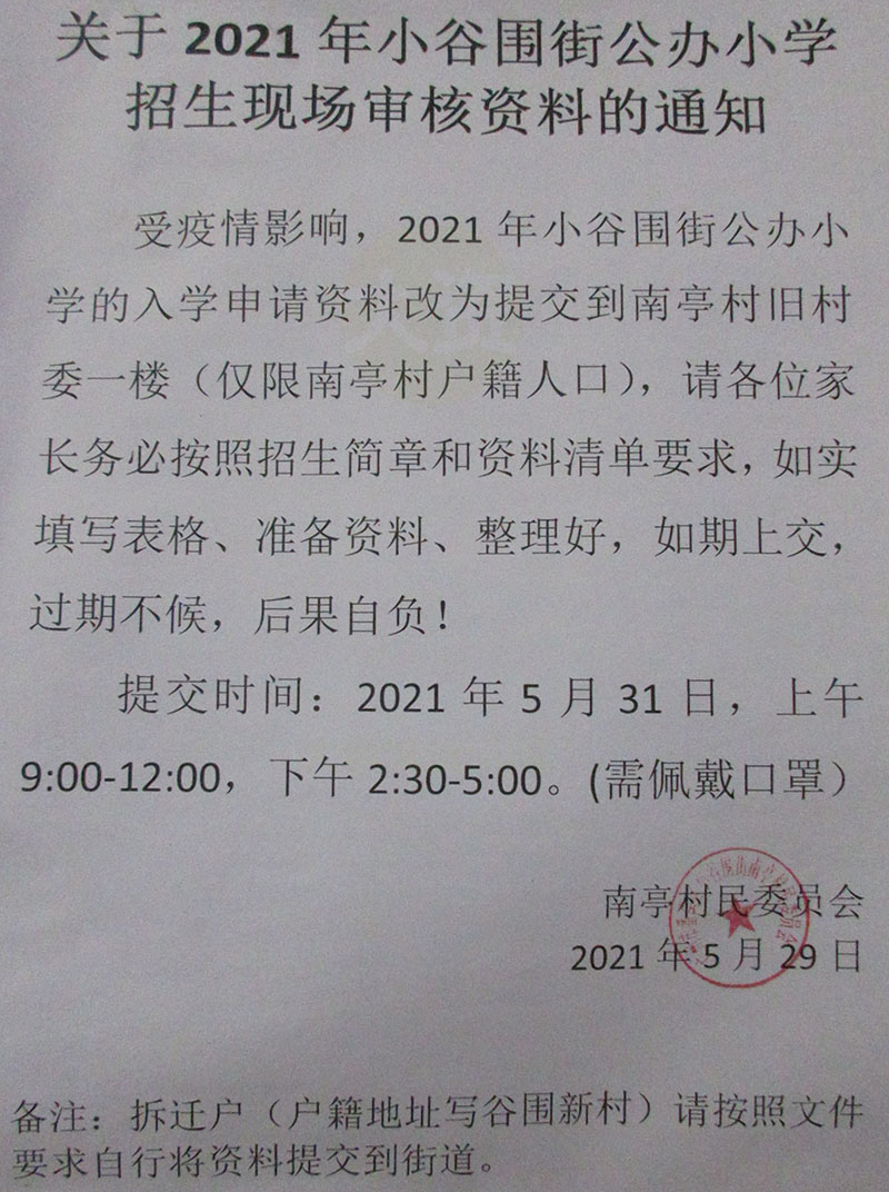 | 关于2021年小谷围街公办小学招生现场审核资料的通知 | ||||||