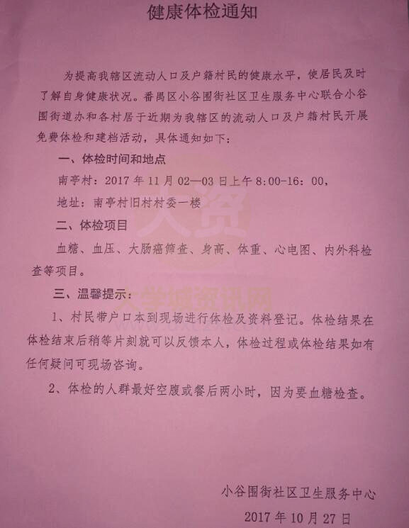 | 小谷围街社区卫生服务中心免费健康体检通知 | ||||||