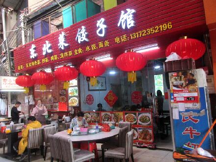 三号楼-东北菜饺子馆门前吊了六个喜气的大红灯笼