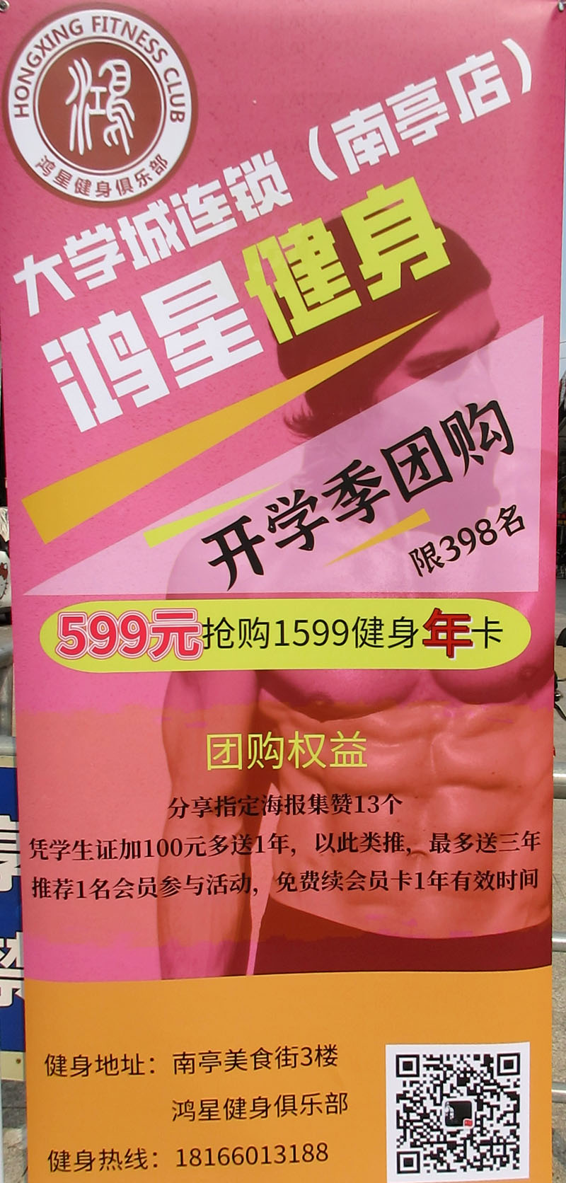| 南亭商业街三号楼北-鸿星健身 开学季团购 限398名 599元抢购1599健身年卡 | ||||||