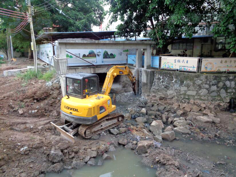 | 南亭村河涌改造工程挖掘机村委楼后正在作业 | ||||||
