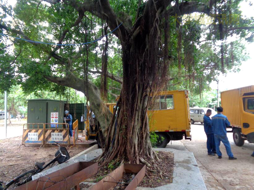 | 电工正在调配or检修篮球场旁新建变电箱 | ||||||